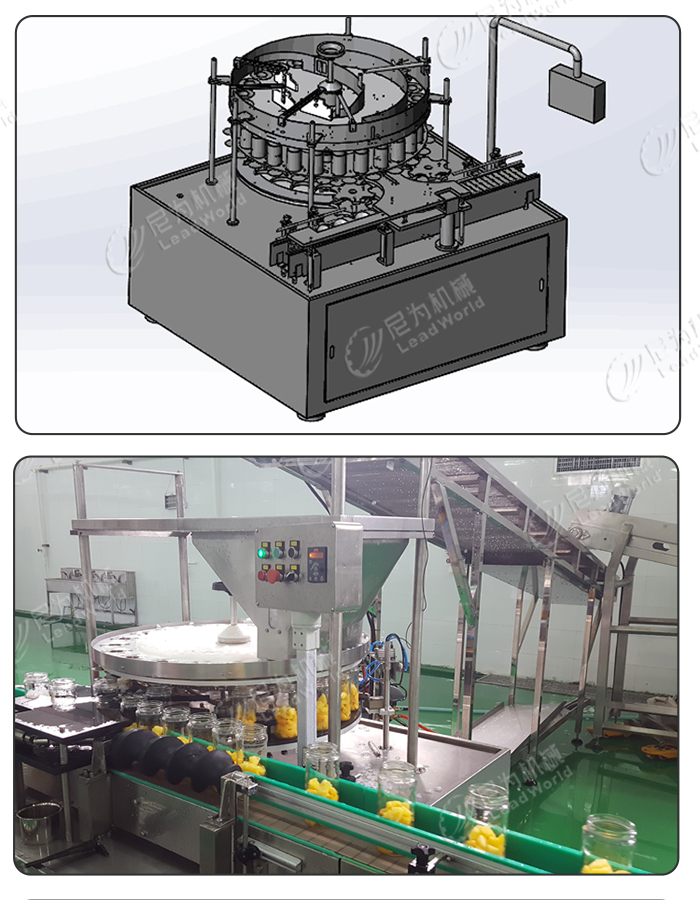 尼為機(jī)械丁料灌裝機(jī)又名容器式計(jì)量灌裝機(jī),主要用于灌裝蔬菜、水果、玉米、豆類等丁料裝罐。