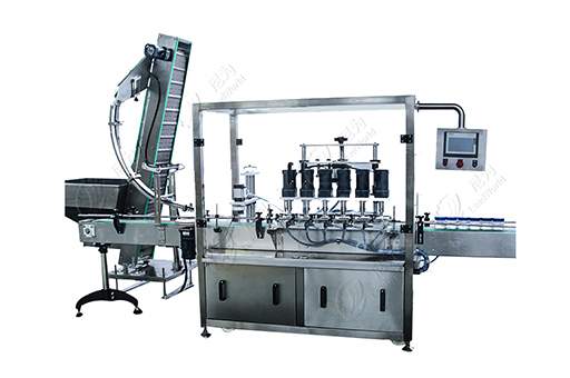 自動(dòng)提升上蓋、旋蓋,瓶子直線進(jìn)入,連續(xù)旋蓋,速度快,穩(wěn)定。