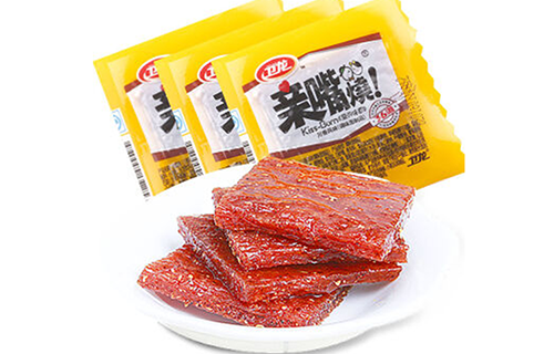 像熱度最高、老少皆宜的“衛(wèi)龍親嘴燒”,就是采用了自動拉伸膜真空包裝機進行包裝,真空包裝有效地保持了辣條的色澤、風味和香氣。