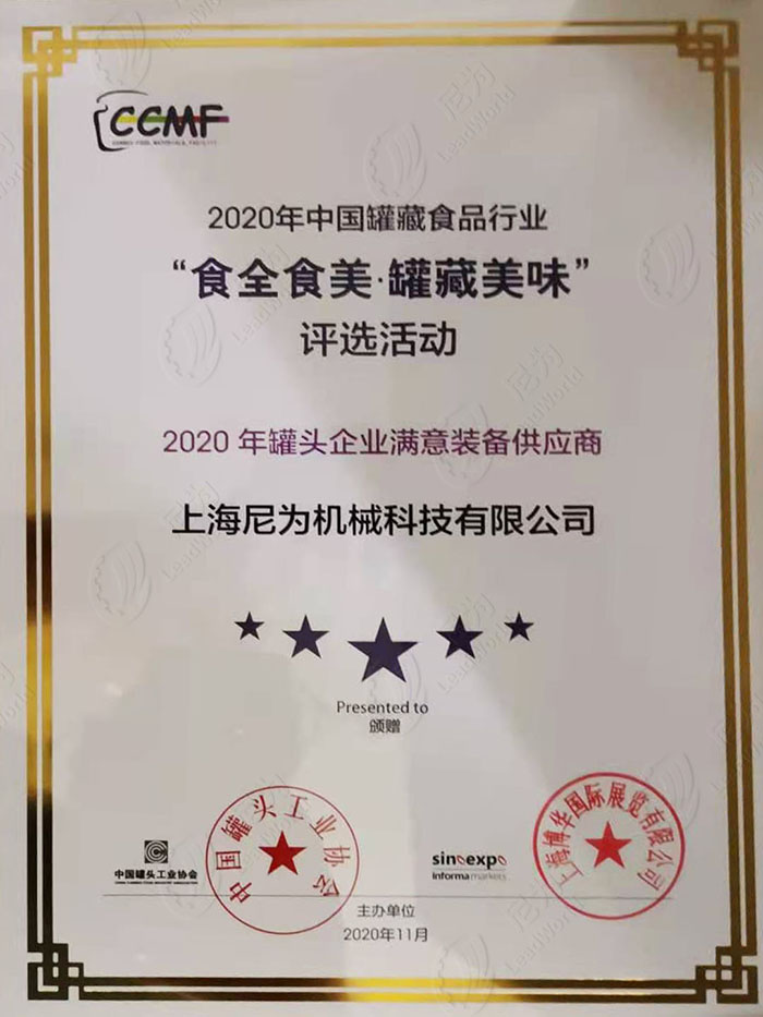 恭喜尼為榮獲“2020年罐頭企業(yè)滿意設(shè)備工藝商